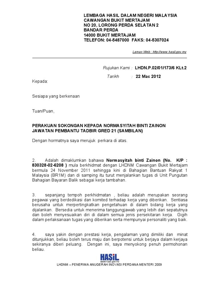 Surat Sokongan Untuk Permohonan Kerja Letter 7saudara Com